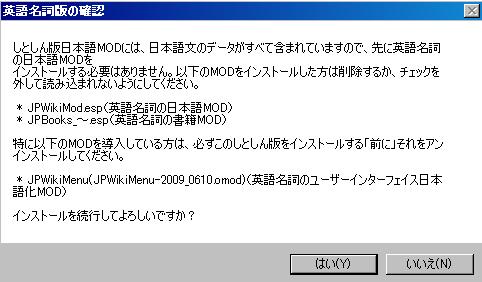ここで導入したJPWikiMODとしとしん版は併用できませんでしたーあはははは…orz