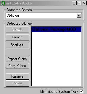 「OblivionClone」をクリックして選択し、「Switch」をクリック。