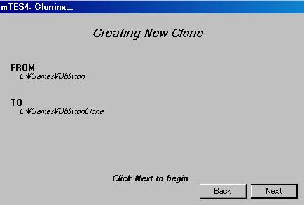 “Enter a unique name for the new clone.”と出てくるので、複製フォルダの名前(ここでは「OblivionClone」)を入力し、「OK」クリック。