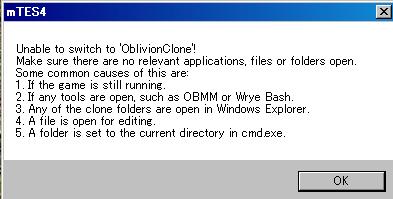 “You are about to create a new clone from 'Oblivion_PackageMOD'.Continue?”