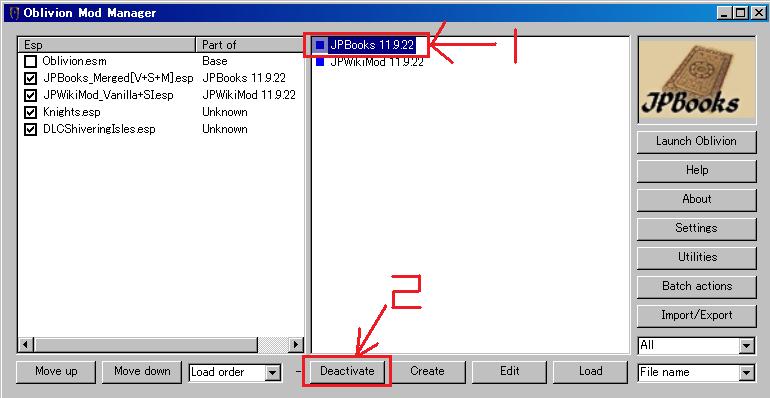 後から入れた物を先に外すのがいいかなと思ったので↓のようにJPBooksを選択し、「Deactivate」をクリック。